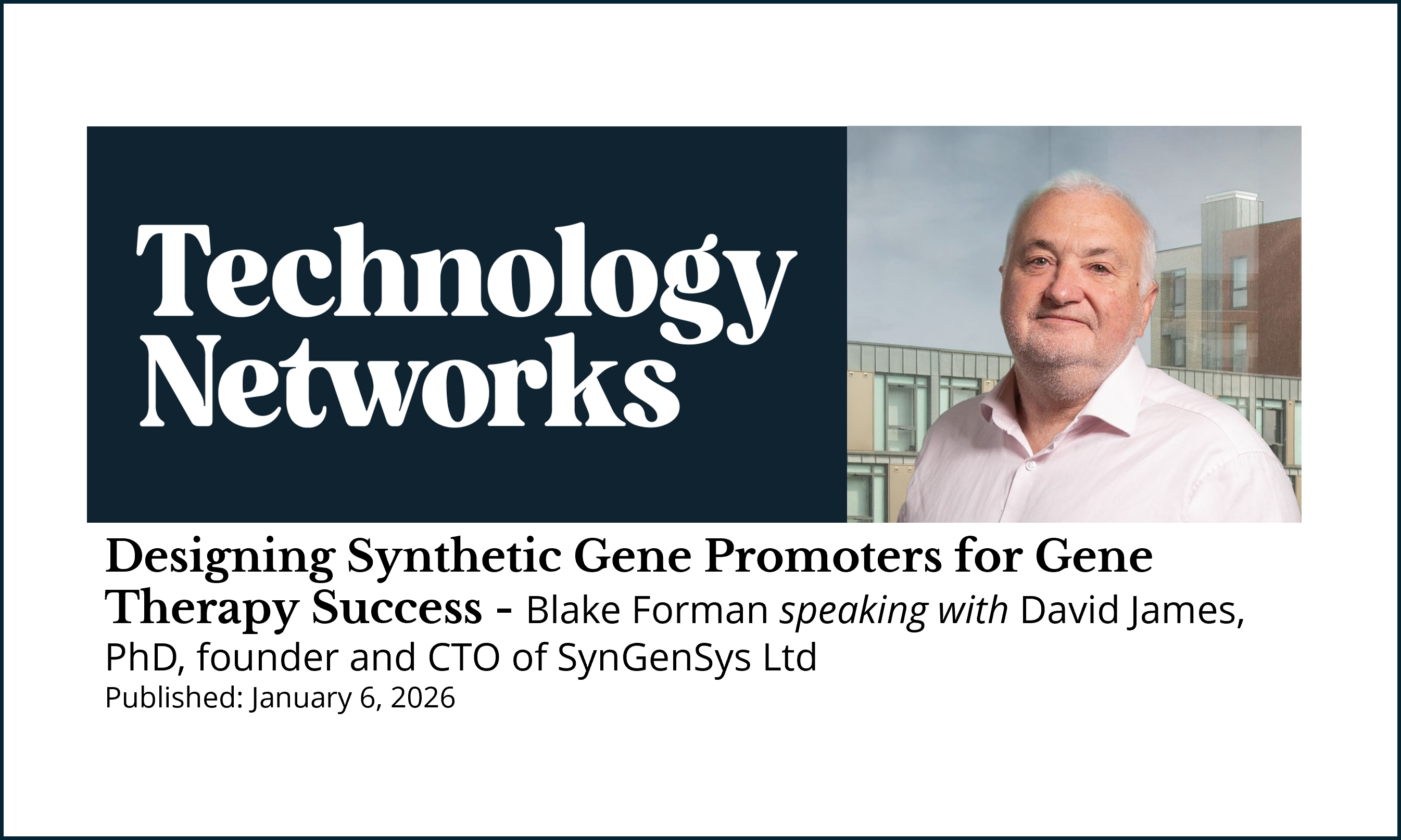 Dr Mike Daniels, ChiefCommercial Officer, SynGenSys, commented: “The launch of Liver.SET™ represents another significant milestone for SynGenSys, demonstrating that our platform can deliver synthetic promoter solutions for real gene therapy development needs. We see this as a key enabler for in vivo gene therapies, and a reliable, validated starting point for deeper collaboration with developers seeking to design novel therapeutics with enhanced precision and safety.”